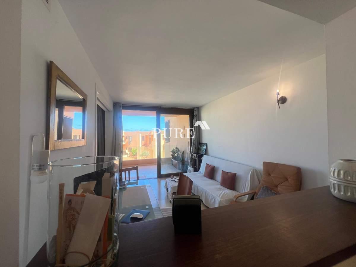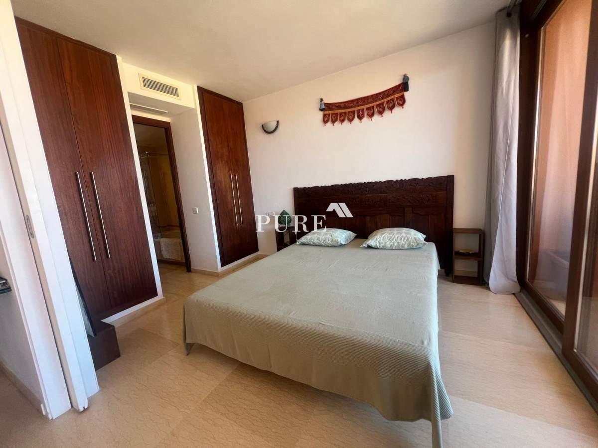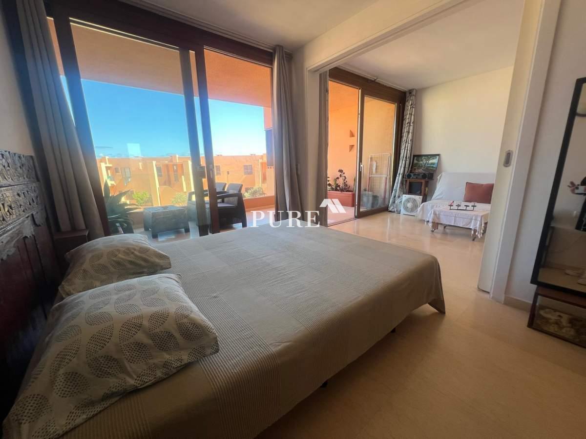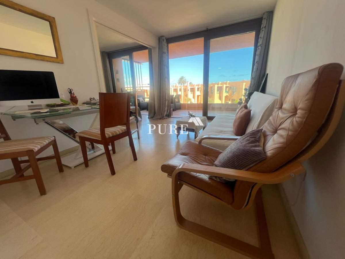 The apartment is part of a large terracotta-coloured residential complex situated directly in front of the beach. Residents can enjoy the communal swimming pool and easy access to Playa d’en Bossa’s finest area, surrounded by dunes and some of Ibiza’s most renowned restaurants such as Zazú and Playa Soleil. Despite its prime location, the setting remains quiet and relaxed, offering the perfect balance between tranquillity and proximity to lively hotspots.