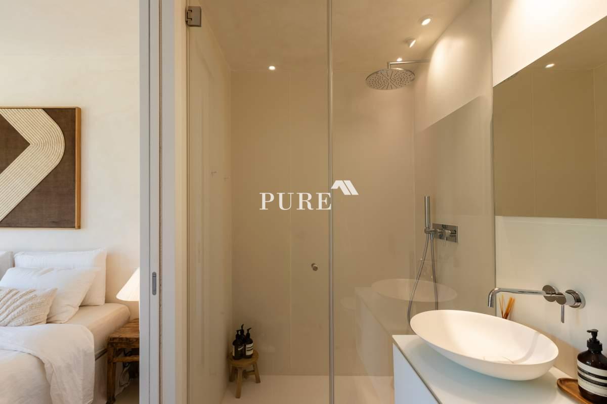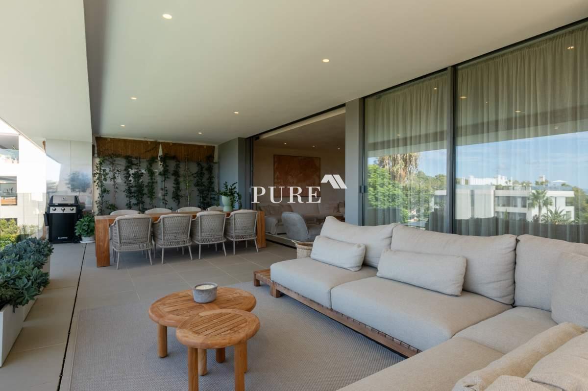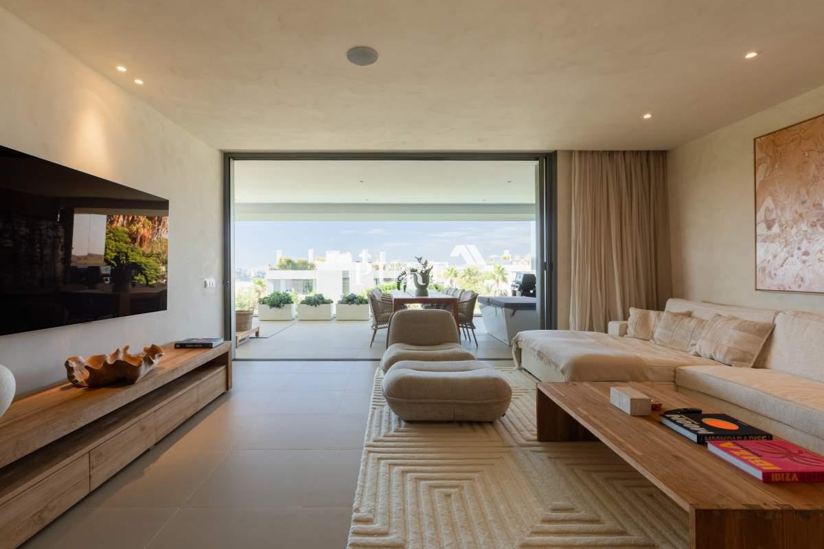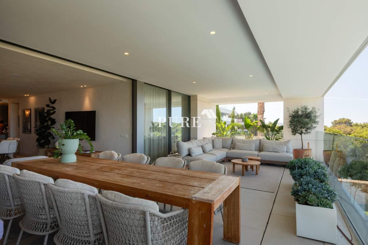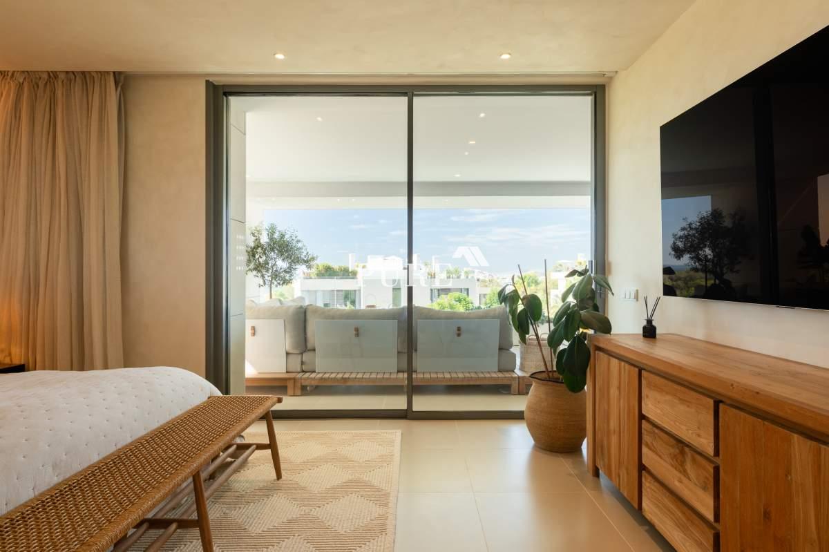 Het royale terras van 52 m² op het zuiden vergroot de leefruimte naar buiten, perfect om te genieten van het warme klimaat en de spectaculaire zonsondergangen van Ibiza. Of u nu buiten eet, in de zon ligt of vrienden ontvangt, het terras biedt de ideale setting tegen een achtergrond van zee, jachthaven en stadslichten.