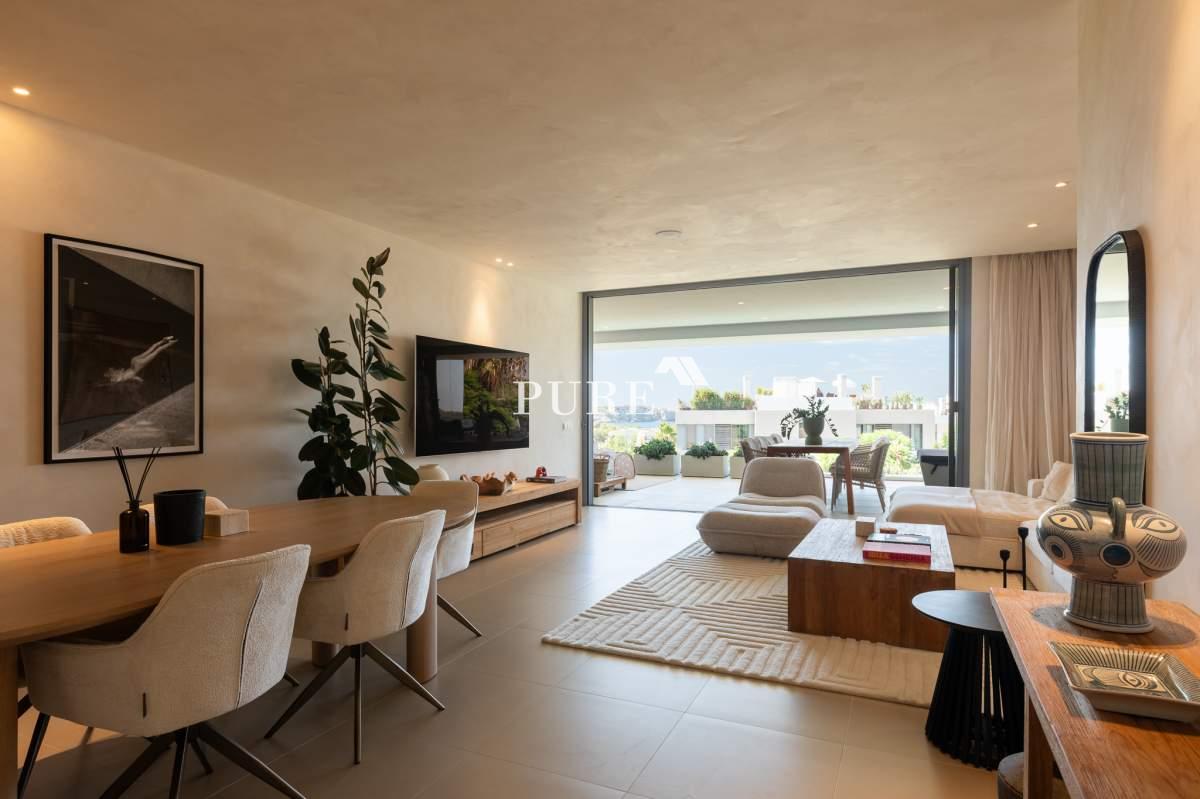 Dit uitzonderlijke appartement, gelegen in het exclusieve White Angel-complex, biedt een mix van modern design, hoogwaardig comfort en adembenemende uitzichten. Perfect gelegen in de heuvels van Talamanca, kijkt het uit over de glinsterende baai van Talamanca, Marina Botafoch en de historische Dalt Vila, met een van de meest begeerde panorama's van Ibiza.