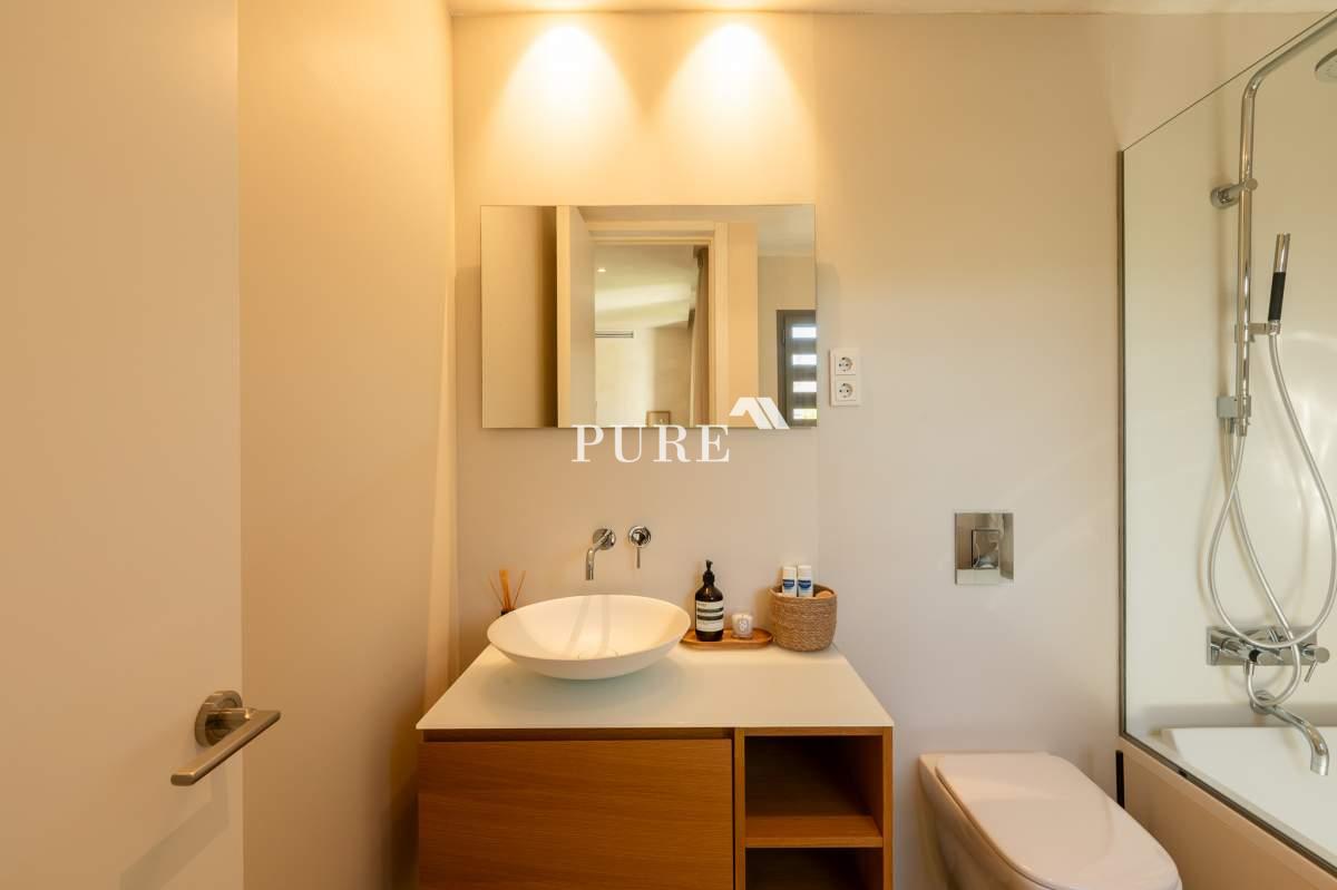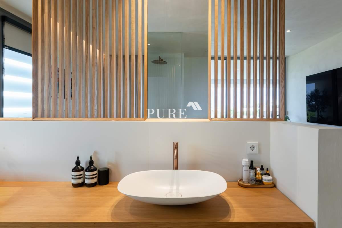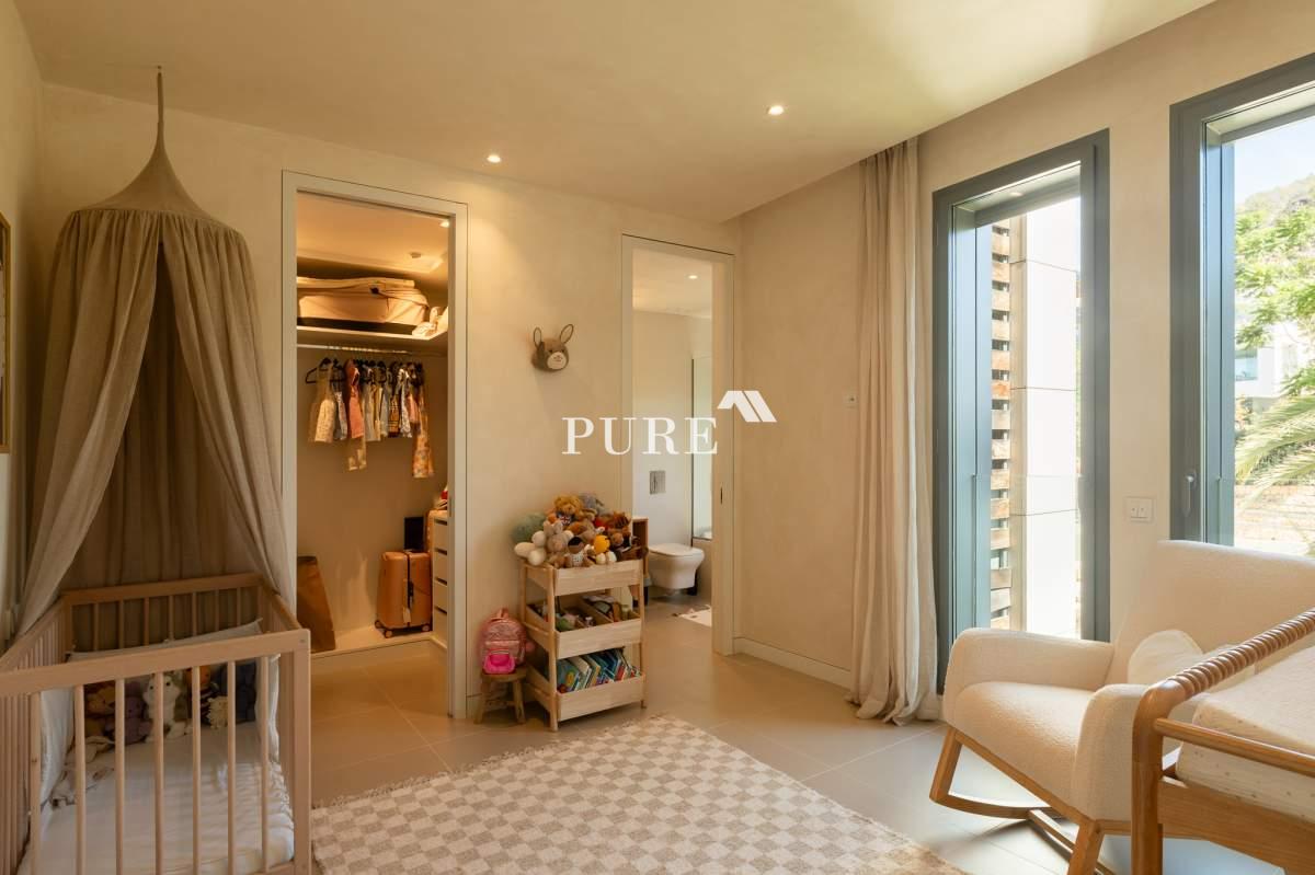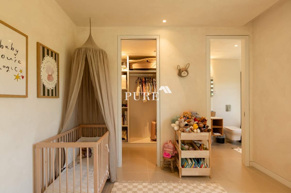 De hoofdslaapkamer beschikt over een eigen badkamer en directe toegang tot het terras, waar u kunt genieten van privémomenten met uitzicht. Elk van de vier slaapkamers is ontworpen met oog op comfort en privacy, waardoor deze woning ideaal is voor zowel gezinswoningen als het ontvangen van gasten. De woning beschikt ook over een eigen smarthomesysteem, waardoor elk element van de woning zowel functioneel als stijlvol is.